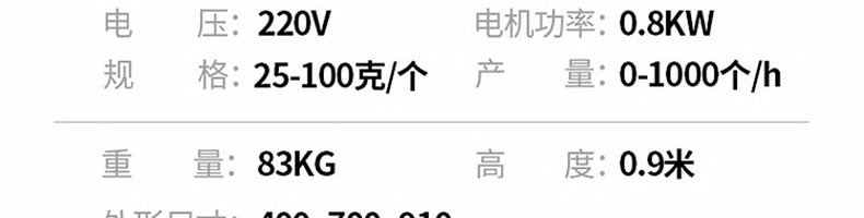 名称XZ-510丝瓜app在线下载 电源220V 功率电机功率:0.8KW 产量0-1000个/h 尺寸400X700x910mm 重量83KG 规格25-100克/个 其他高度:0.9米