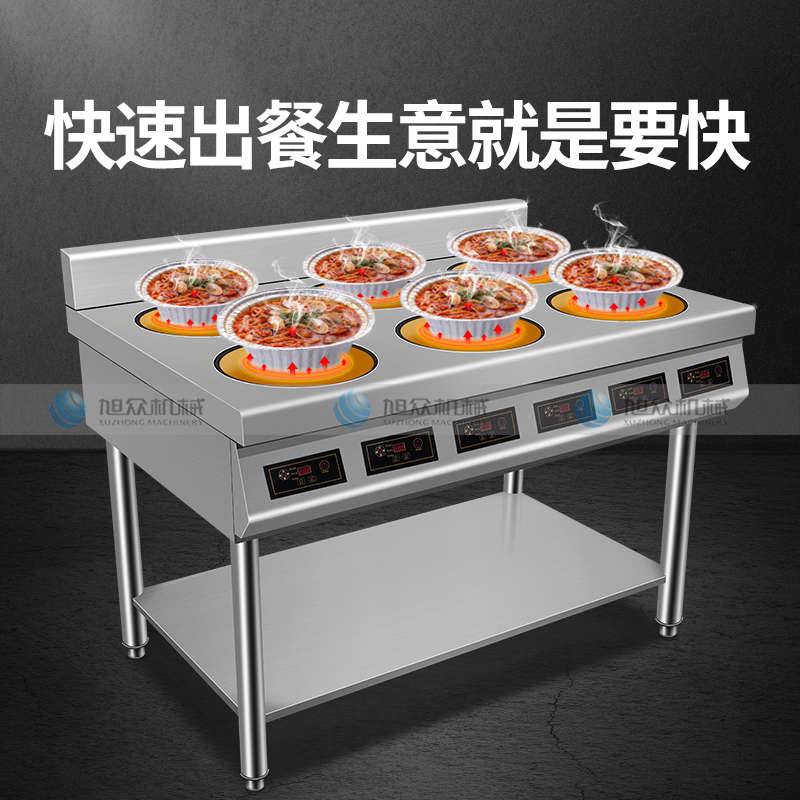 XZ-LBZL210圆头六头电陶炉,快餐外卖抢着买,一炉百烹快速出餐。煎炒焖煮煲等各样花式,样样行,单头3500W大火力实现快速出餐不等待做菜重要的就是火候,火力不足一切都是白搭。