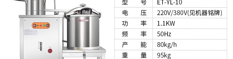 ET-YL-09压力电热豆浆机,多功能商用豆浆机,细、香、浓。丝瓜视频下载在线珍惜每一颗大豆,让每颗大豆进发营养价值。丝瓜视频下载在线豆浆机做您的招牌豆浆打磨细腻、口感香浓、回味无穷。