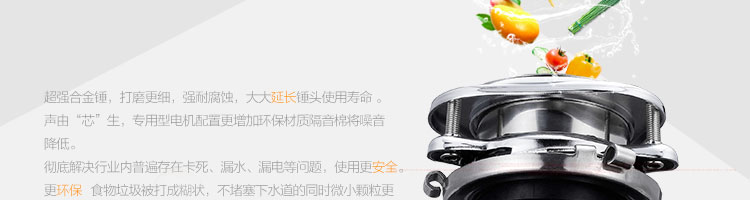 ACLQ56-厨房垃圾处理器,该机器是靠内部结构、零件组合达到处理垃圾的效果,通过碾、压、挤、磨等系统的处理,在十几秒内安全将食物垃圾处理成小于3毫米的颗粒,随着水流排入下水道,使用十分安全。