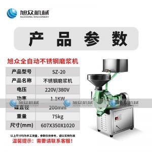 名称SZ-20不锈钢磨浆机 电源220/380v 功率1.1kw 产量 尺寸607*350*1020mm 重量75kg 规格 其他