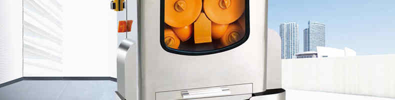 2000E-3自动榨橙汁机,该机器结构紧凑合理、体积小、重量轻,设计合理,无论从外观和内部结构都是专业的,凡与榨汁接触的原件均为不锈钢和无毒塑料聚丙烯和 A.B.S。食用卫生安全。